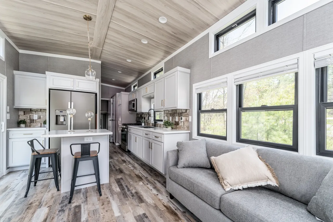 Smart tiny house design allows the Elevation 103 to feel larger than its 399 sq ft footprint. The open concept tiny home layout creates seamless flow between the living, kitchen, and bedroom areas, maximizing usability. Every feature, from storage solutions to functional finishes, has been optimized for comfort and practicality, making it a modern move-in ready home for any lifestyle. For those exploring compact luxury homes, this model demonstrates that efficient space planning can provide all the conveniences of larger homes while retaining affordability and charm. The Elevation 103 park model proves that small homes can make a big impact on daily life.
